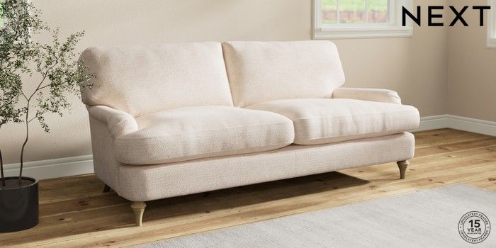 7.0.3 Buy Sadie Deep Relaxed Sit 3 Seater Sofa Boucle Chenille Oyster High Slim Turned - Light from the Next UK online shop Click here to use our accessible website