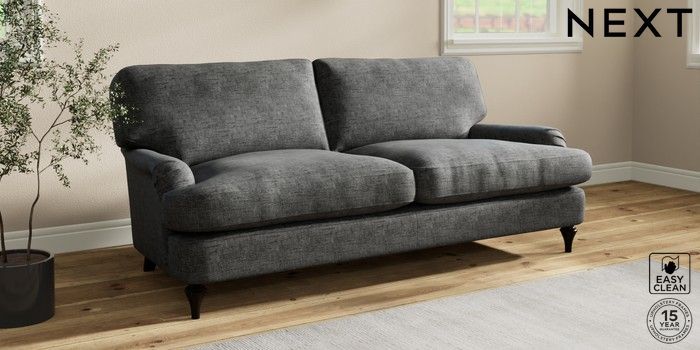 7.0.3 Buy Sadie Deep Relaxed Sit 3 Seater Sofa Boucle Weave Easy Clean Charcoal Grey High Slim Turned - Dark from the Next UK online shop Click here to use our accessible website