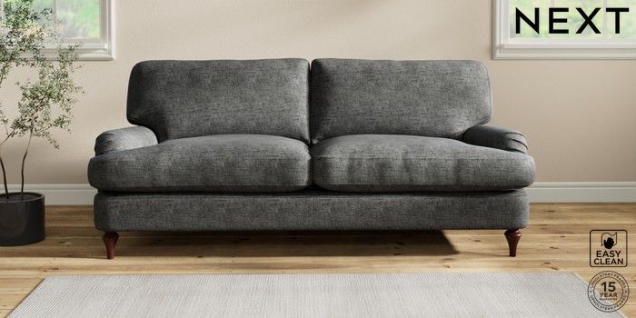 6.12.1 Buy Sadie Deep Relaxed Sit 3 Seater Sofa Boucle Weave Easy Clean Charcoal Grey High Slim Turned - Dark Brown from the Next UK online shop Click here to use our accessible website