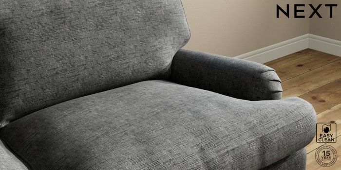 7.0.3 Buy Sadie Deep Relaxed Sit 3 Seater Sofa Boucle Weave Easy Clean Charcoal Grey High Slim Turned - Dark Brown from the Next UK online shop Click here to use our accessible website