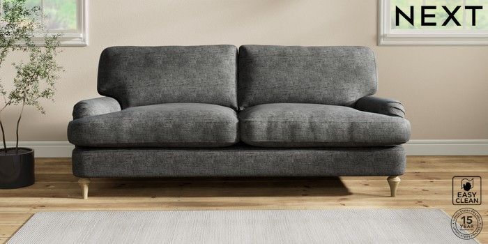 6.12.1 Buy Sadie Deep Relaxed Sit 3 Seater Sofa Boucle Weave Easy Clean Charcoal Grey High Slim Turned - Light from the Next UK online shop Click here to use our accessible website