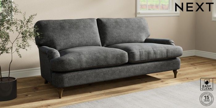 7.0.3 Buy Sadie Deep Relaxed Sit 3 Seater Sofa Boucle Weave Easy Clean Charcoal Grey High Slim Turned - Mid from the Next UK online shop Click here to use our accessible website