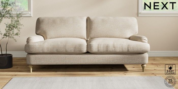 6.12.1 Buy Sadie Deep Relaxed Sit 3 Seater Sofa Boucle Weave Easy Clean Dark Natural High Slim Turned - Light from the Next UK online shop Click here to use our accessible website