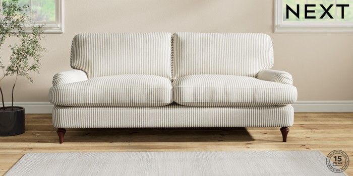 6.12.1 Buy Sadie Deep Relaxed Sit 3 Seater Sofa Chenille Stripe Moss Green High Slim Turned - Dark Brown from the Next UK online shop Click here to use our accessible website