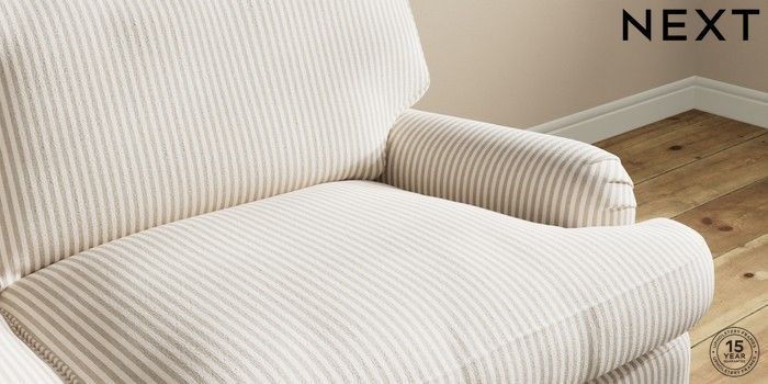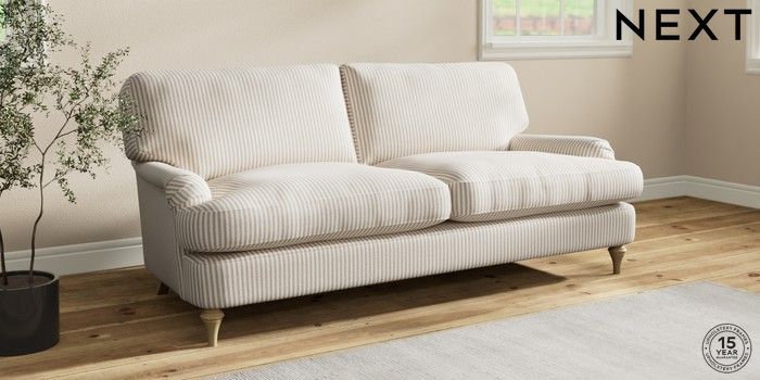 7.0.3 Buy Sadie Deep Relaxed Sit 3 Seater Sofa Chenille Stripe Natural High Slim Turned - Light from the Next UK online shop Click here to use our accessible website