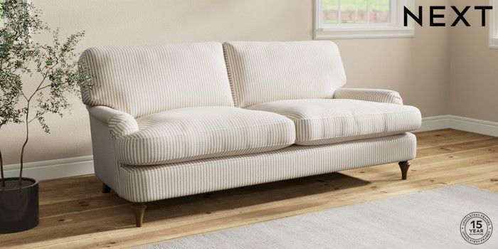 7.0.3 Buy Sadie Deep Relaxed Sit 3 Seater Sofa Chenille Stripe Natural High Slim Turned - Mid from the Next UK online shop Click here to use our accessible website
