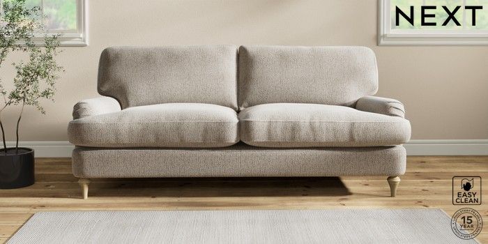 6.12.1 Buy Sadie Deep Relaxed Sit 3 Seater Sofa Chunky Boucle Easy Clean Dove High Slim Turned - Light from the Next UK online shop Click here to use our accessible website