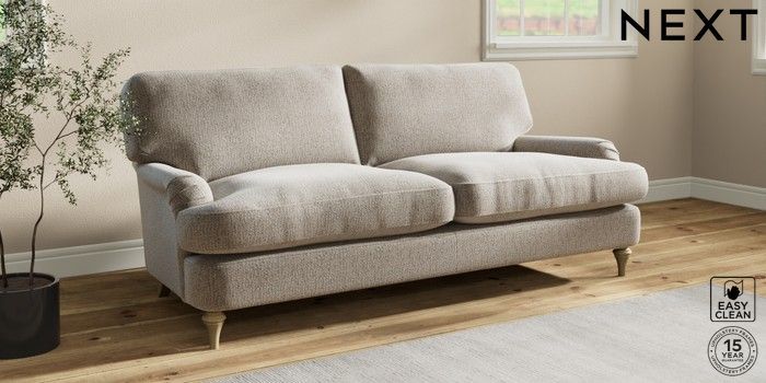 7.0.3 Buy Sadie Deep Relaxed Sit 3 Seater Sofa Chunky Boucle Easy Clean Dove High Slim Turned - Light from the Next UK online shop Click here to use our accessible website