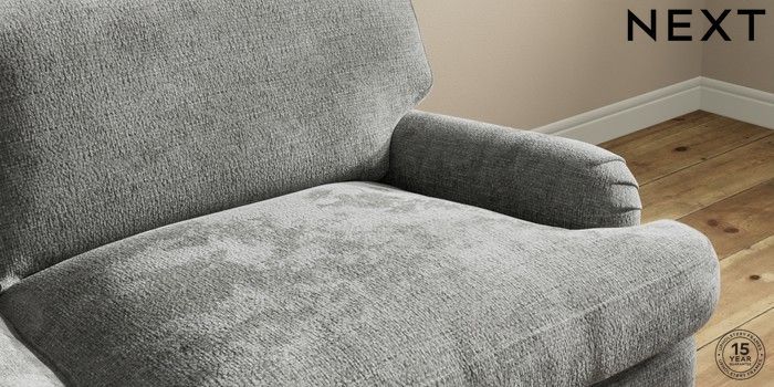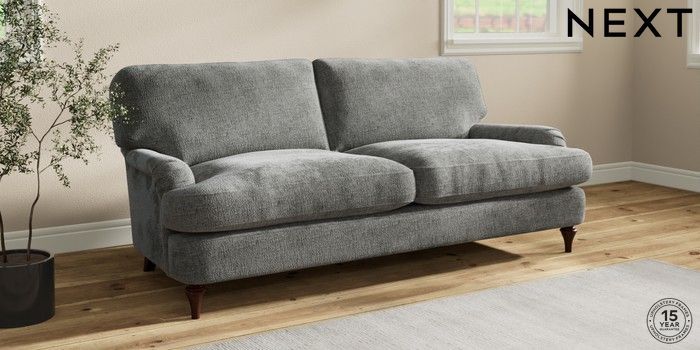 7.0.3 Buy Sadie Deep Relaxed Sit 3 Seater Sofa Chunky Chenille Dark Grey High Slim Turned - Dark Brown from the Next UK online shop Click here to use our accessible website