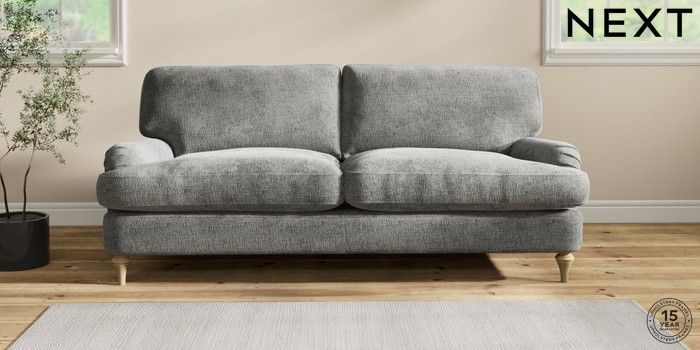 6.12.1 Buy Sadie Deep Relaxed Sit 3 Seater Sofa Chunky Chenille Dark Grey High Slim Turned - Light from the Next UK online shop Click here to use our accessible website