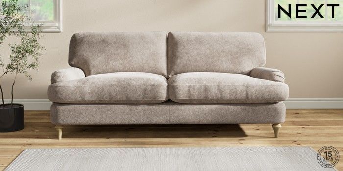 6.12.1 Buy Sadie Deep Relaxed Sit 3 Seater Sofa Chunky Chenille Light Dove High Slim Turned - Light from the Next UK online shop Click here to use our accessible website