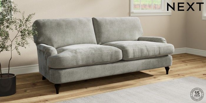 7.0.3 Buy Sadie Deep Relaxed Sit 3 Seater Sofa Chunky Chenille Light Grey High Slim Turned - Dark from the Next UK online shop Click here to use our accessible website