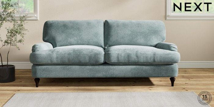 6.12.1 Buy Sadie Deep Relaxed Sit 3 Seater Sofa Chunky Chenille Light Teal Green High Slim Turned - Dark from the Next UK online shop Click here to use our accessible website