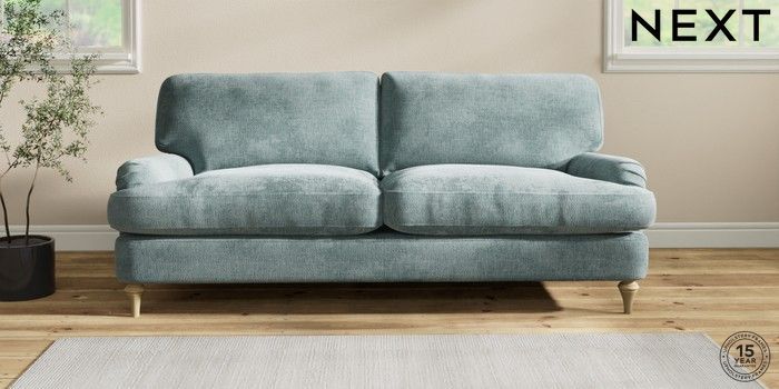 6.12.1 Buy Sadie Deep Relaxed Sit 3 Seater Sofa Chunky Chenille Light Teal Green High Slim Turned - Light from the Next UK online shop Click here to use our accessible website