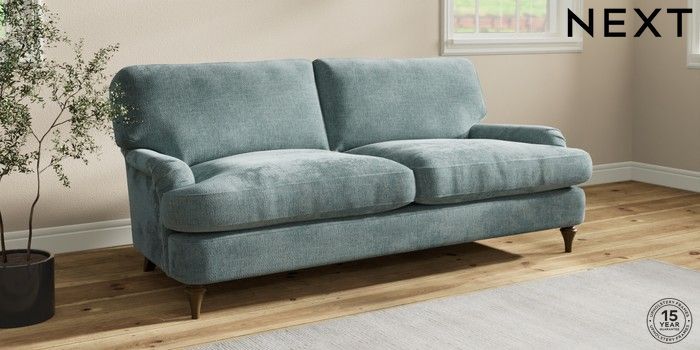 7.0.3 Buy Sadie Deep Relaxed Sit 3 Seater Sofa Chunky Chenille Light Teal Green High Slim Turned - Mid from the Next UK online shop Click here to use our accessible website
