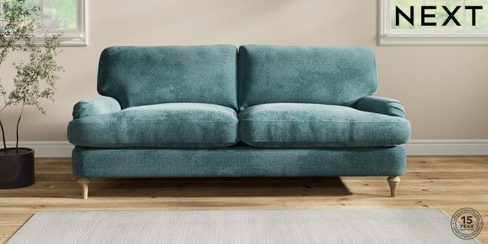 6.12.1 Buy Sadie Deep Relaxed Sit 3 Seater Sofa Chunky Chenille Mid Teal Green High Slim Turned - Light from the Next UK online shop Click here to use our accessible website