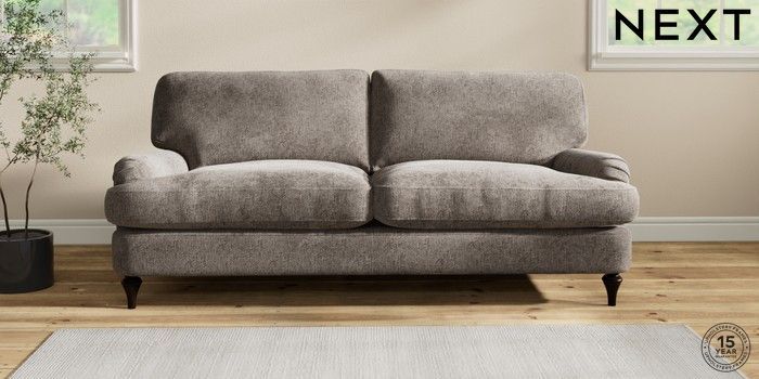 6.12.1 Buy Sadie Deep Relaxed Sit 3 Seater Sofa Chunky Chenille Mink Brown High Slim Turned - Dark from the Next UK online shop Click here to use our accessible website