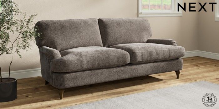 7.0.3 Buy Sadie Deep Relaxed Sit 3 Seater Sofa Chunky Chenille Mink Brown High Slim Turned - Mid from the Next UK online shop Click here to use our accessible website