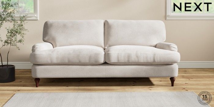6.12.1 Buy Sadie Deep Relaxed Sit 3 Seater Sofa Chunky Chenille Oyster High Slim Turned - Dark Brown from the Next UK online shop Click here to use our accessible website