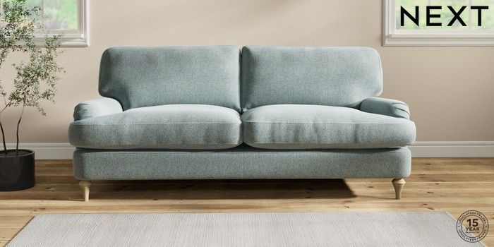 6.12.1 Buy Sadie Deep Relaxed Sit 3 Seater Sofa Chunky Marl Mid Blue High Slim Turned - Light from the Next UK online shop Click here to use our accessible website