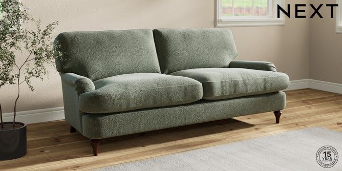 7.0.3 Buy Sadie Deep Relaxed Sit 3 Seater Sofa Chunky Texture Mid Forest Green High Slim Turned - Dark Brown from the Next UK online shop Click here to use our accessible website
