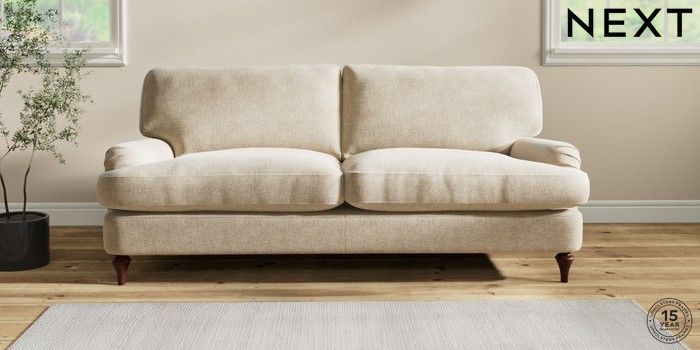 6.12.1 Buy Sadie Deep Relaxed Sit 3 Seater Sofa Chunky Weave Cream High Slim Turned - Dark Brown from the Next UK online shop Click here to use our accessible website