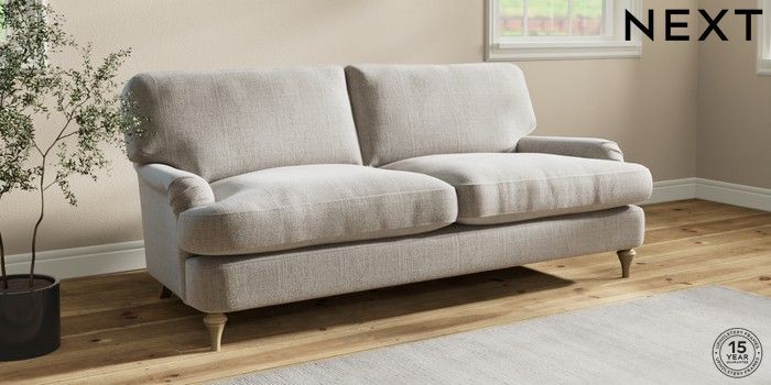 7.0.3 Buy Sadie Deep Relaxed Sit 3 Seater Sofa Chunky Weave Dove Grey High Slim Turned - Light from the Next UK online shop Click here to use our accessible website