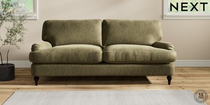 6.12.1 Buy Sadie Deep Relaxed Sit 3 Seater Sofa Cotswold Chenille Dark Green High Slim Turned - Dark from the Next UK online shop Click here to use our accessible website