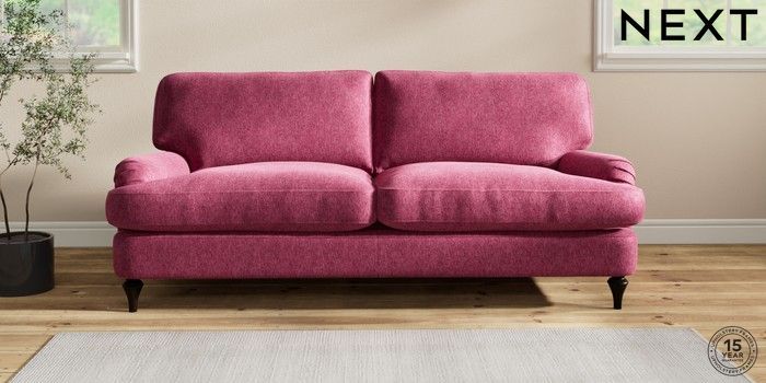 6.12.1 Buy Sadie Deep Relaxed Sit 3 Seater Sofa Cotswold Chenille Dark Raspberry Pink High Slim Turned - Dark from the Next UK online shop Click here to use our accessible website