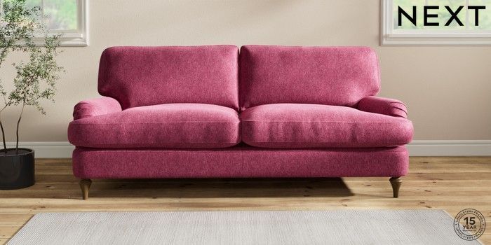 6.12.1 Buy Sadie Deep Relaxed Sit 3 Seater Sofa Cotswold Chenille Dark Raspberry Pink High Slim Turned - Mid from the Next UK online shop Click here to use our accessible website