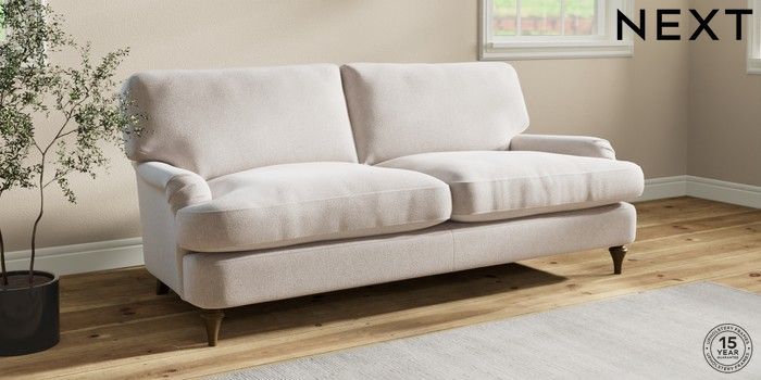 7.0.3 Buy Sadie Deep Relaxed Sit 3 Seater Sofa Cotswold Chenille Oyster High Slim Turned - Mid from the Next UK online shop Click here to use our accessible website