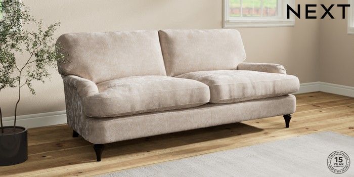 7.0.3 Buy Sadie Deep Relaxed Sit 3 Seater Sofa Distressed Velour Mid Natural High Slim Turned - Dark from the Next UK online shop Click here to use our accessible website