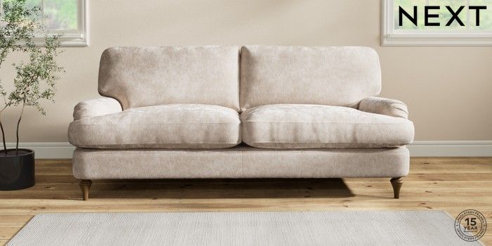 6.12.1 Buy Sadie Deep Relaxed Sit 3 Seater Sofa Distressed Velour Mid Natural High Slim Turned - Mid from the Next UK online shop Click here to use our accessible website