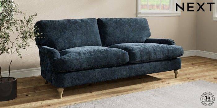 7.0.3 Buy Sadie Deep Relaxed Sit 3 Seater Sofa Distressed Velour Midnight Blue High Slim Turned - Light from the Next UK online shop Click here to use our accessible website