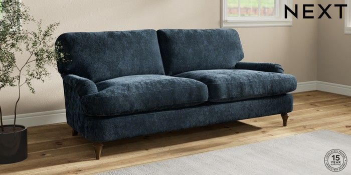7.0.3 Buy Sadie Deep Relaxed Sit 3 Seater Sofa Distressed Velour Midnight Blue High Slim Turned - Mid from the Next UK online shop Click here to use our accessible website