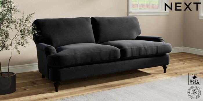 7.0.3 Buy Sadie Deep Relaxed Sit 3 Seater Sofa Fine Chenille Easy Clean Black High Slim Turned - Dark from the Next UK online shop Click here to use our accessible website