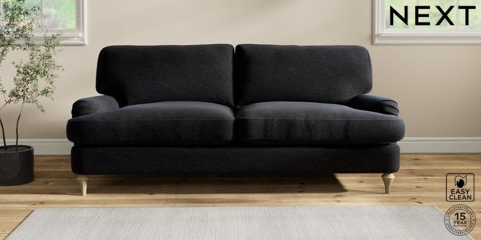 6.12.1 Buy Sadie Deep Relaxed Sit 3 Seater Sofa Fine Chenille Easy Clean Black High Slim Turned - Light from the Next UK online shop Click here to use our accessible website