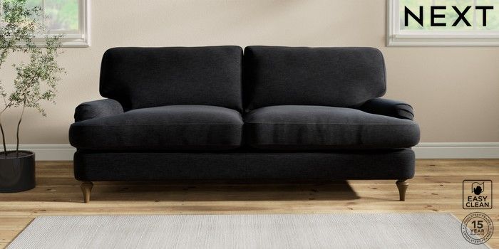 6.12.1 Buy Sadie Deep Relaxed Sit 3 Seater Sofa Fine Chenille Easy Clean Black High Slim Turned - Mid from the Next UK online shop Click here to use our accessible website