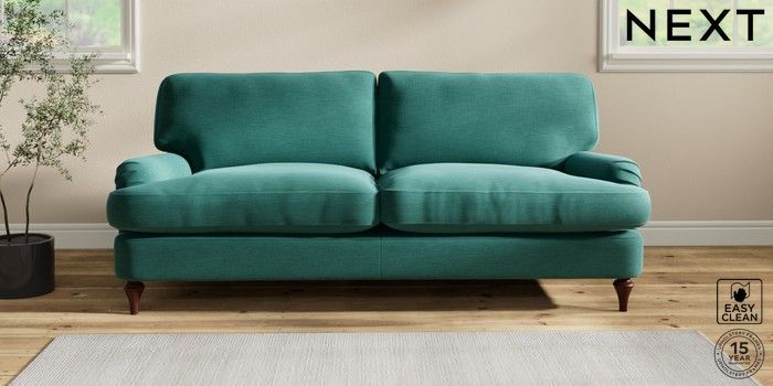 6.12.1 Buy Sadie Deep Relaxed Sit 3 Seater Sofa Fine Chenille Easy Clean Dark Juniper Green High Slim Turned - Dark Brown from the Next UK online shop Click here to use our accessible website