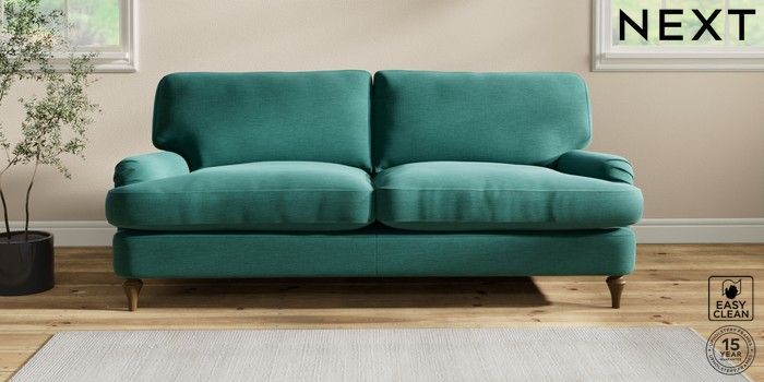 6.12.1 Buy Sadie Deep Relaxed Sit 3 Seater Sofa Fine Chenille Easy Clean Dark Juniper Green High Slim Turned - Mid from the Next UK online shop Click here to use our accessible website