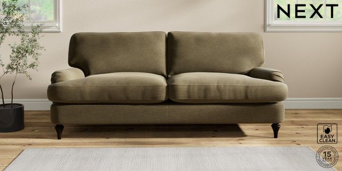 6.12.1 Buy Sadie Deep Relaxed Sit 3 Seater Sofa Fine Chenille Easy Clean Dark Moss Green High Slim Turned - Dark from the Next UK online shop Click here to use our accessible website