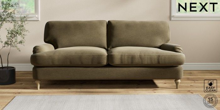 6.12.1 Buy Sadie Deep Relaxed Sit 3 Seater Sofa Fine Chenille Easy Clean Dark Moss Green High Slim Turned - Light from the Next UK online shop Click here to use our accessible website