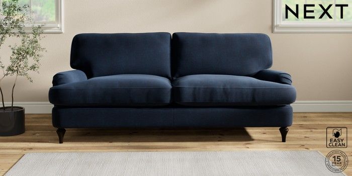 6.12.1 Buy Sadie Deep Relaxed Sit 3 Seater Sofa Fine Chenille Easy Clean Dark Navy Blue High Slim Turned - Dark from the Next UK online shop Click here to use our accessible website