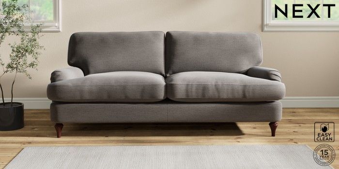 6.12.1 Buy Sadie Deep Relaxed Sit 3 Seater Sofa Fine Chenille Easy Clean Dark Smoke Grey High Slim Turned - Dark Brown from the Next UK online shop Click here to use our accessible website