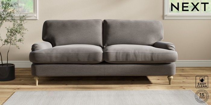 6.12.1 Buy Sadie Deep Relaxed Sit 3 Seater Sofa Fine Chenille Easy Clean Dark Smoke Grey High Slim Turned - Light from the Next UK online shop Click here to use our accessible website