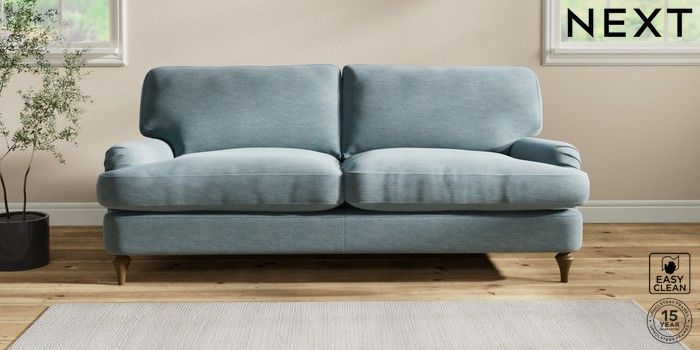 6.12.1 Buy Sadie Deep Relaxed Sit 3 Seater Sofa Fine Chenille Easy Clean Mid Blue High Slim Turned - Mid from the Next UK online shop Click here to use our accessible website