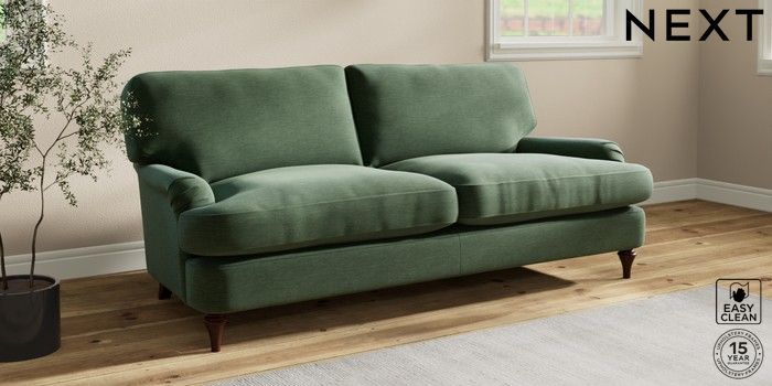 7.0.3 Buy Sadie Deep Relaxed Sit 3 Seater Sofa Fine Chenille Easy Clean Mid Khaki Green High Slim Turned - Dark Brown from the Next UK online shop Click here to use our accessible website