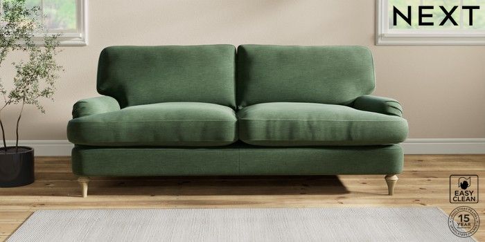 6.12.1 Buy Sadie Deep Relaxed Sit 3 Seater Sofa Fine Chenille Easy Clean Mid Khaki Green High Slim Turned - Light from the Next UK online shop Click here to use our accessible website