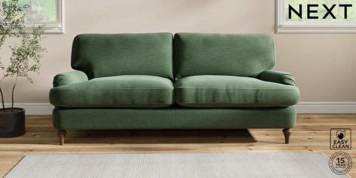 6.12.1 Buy Sadie Deep Relaxed Sit 3 Seater Sofa Fine Chenille Easy Clean Mid Khaki Green High Slim Turned - Mid from the Next UK online shop Click here to use our accessible website