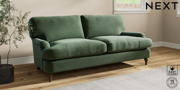 7.0.3 Buy Sadie Deep Relaxed Sit 3 Seater Sofa Fine Chenille Easy Clean Mid Khaki Green High Slim Turned - Mid from the Next UK online shop Click here to use our accessible website
